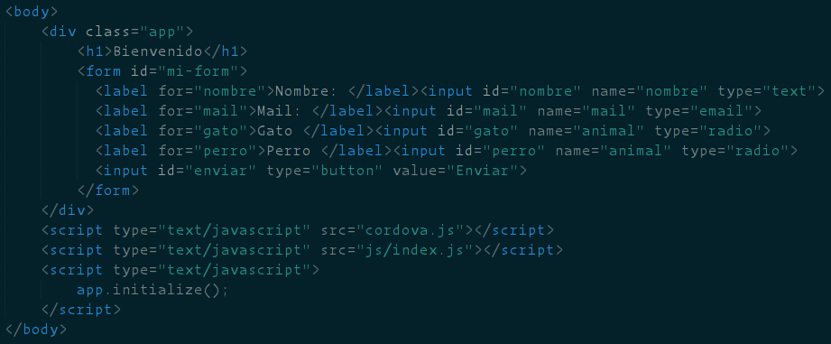 Modificamos el contenido del index.html poniendo nuestro formulario